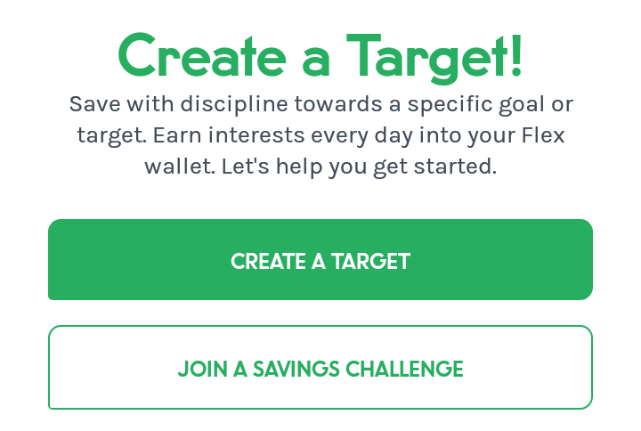 With Target Savings, you are able to save consistently towards a particular financial goal. You can create a personal target or a Group savings challenge with your multiple users.
