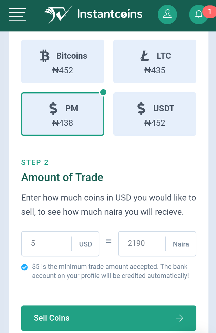 How To Sell Perfect Money or Bitcoin on Instantcoins