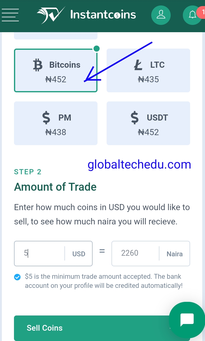 Then click on the “Sell Coins” button to complete the transaction. See screenshot below: