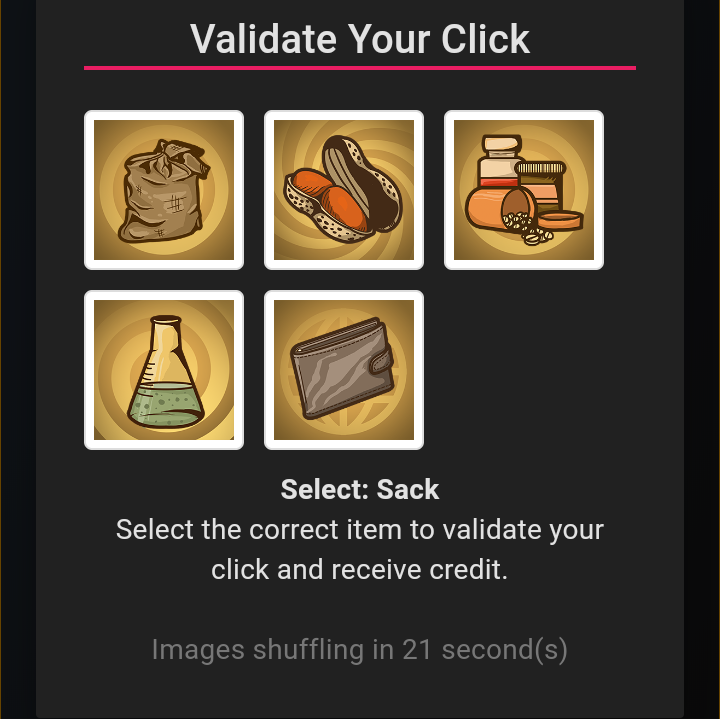 You will confirm what you saw and you will get coin. From the screenshot below, you are asked to click on Sack.