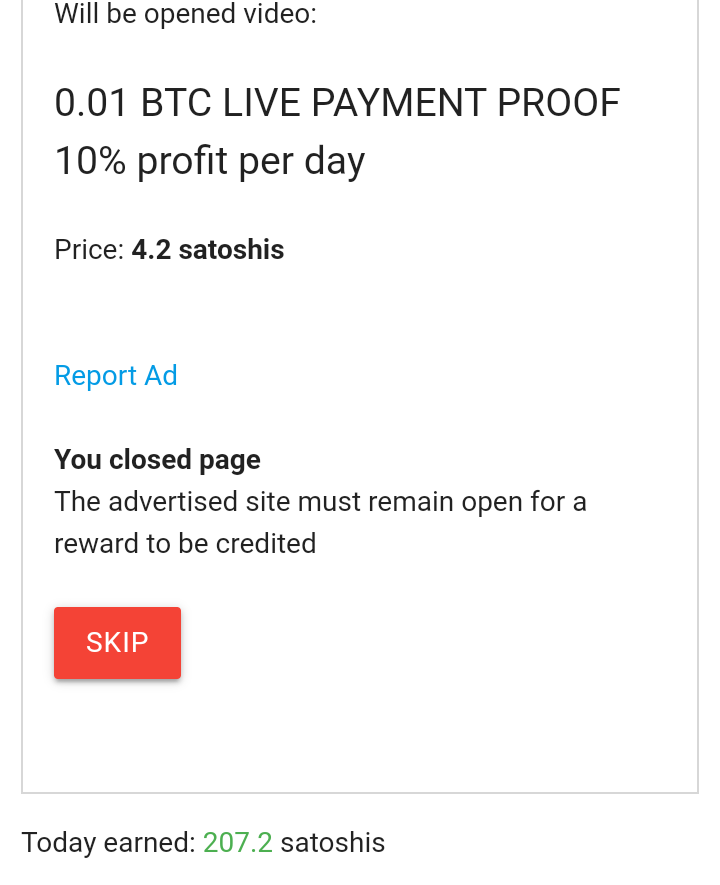 Then, you earned after that. Do so for all the ads.Sometimes, some ads might be giving you a problem. Just click on SKIP as seen from the screenshot below, so that you can visit other ads.