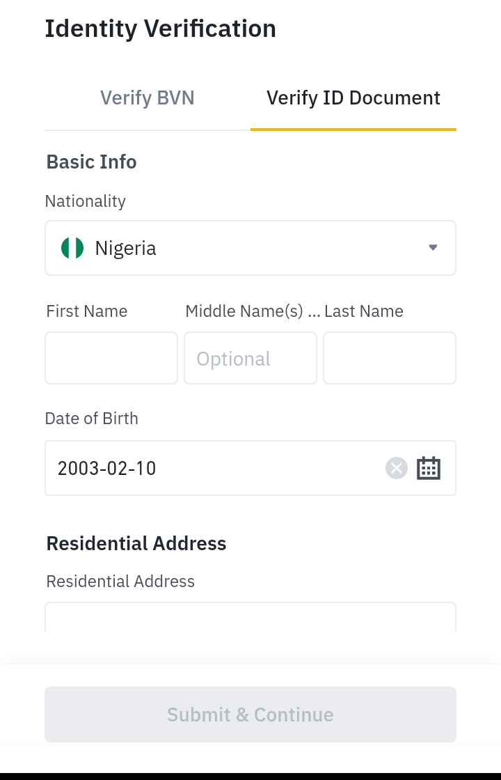 Or click the verify ID Document and fill the information and click Submit & Continue as seen from the screenshot below. Then, the facial verification process will begin. Click the Begin Verification.
