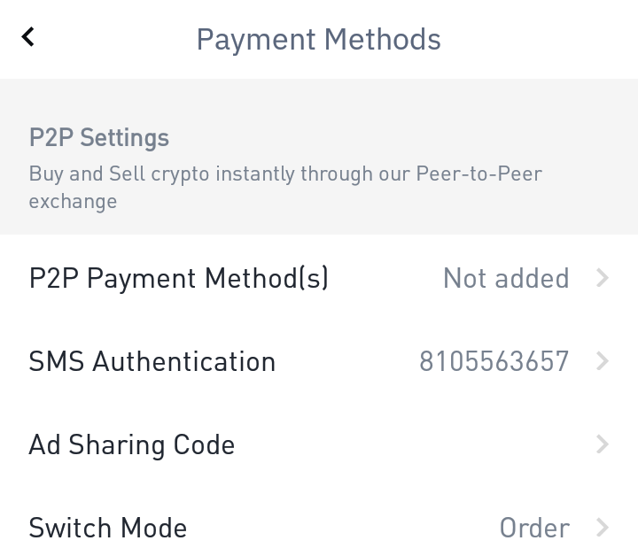 Then click on P2P payment Methods.