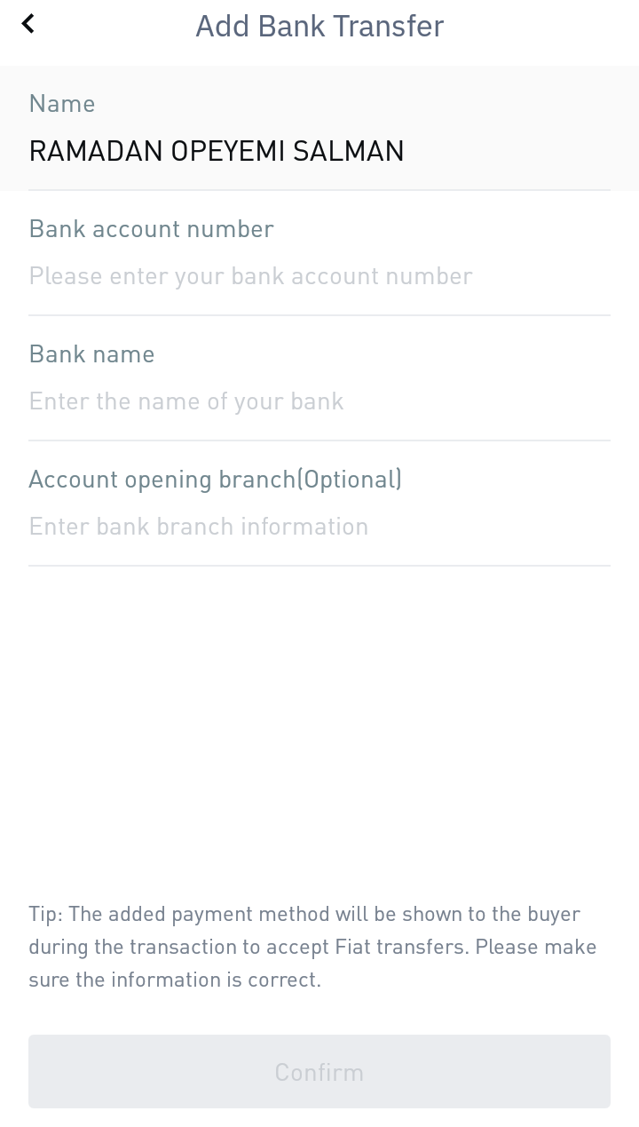 Then enter your bank details by entering your account number, name.