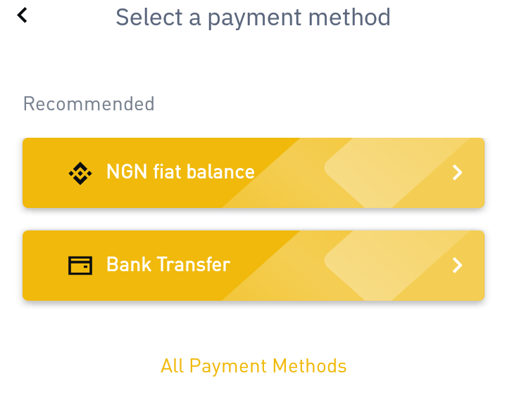 Select the Bank payment method and type the NGN currency to buy the crypto.