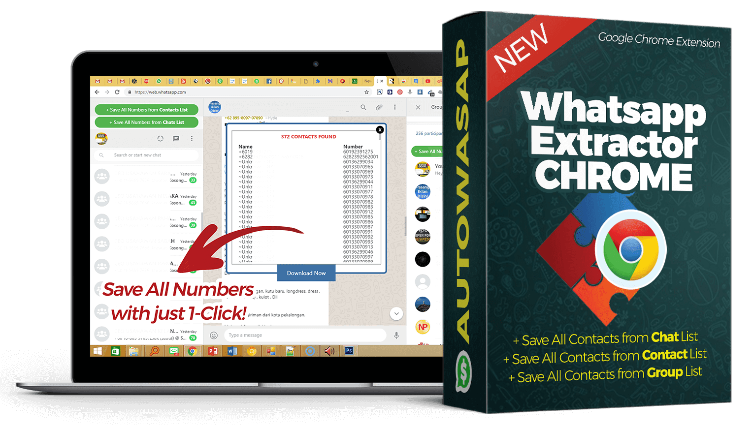 WhatsApp Contacts Extractor is a chrome extension that allows you in a single click to download all numbers include name (if available) from your WhatsApp accounts and save it in an excel sheet (.csv). With this extension, you save a lot of your time, don't miss any numbers from your potential customers and increase your sales now!