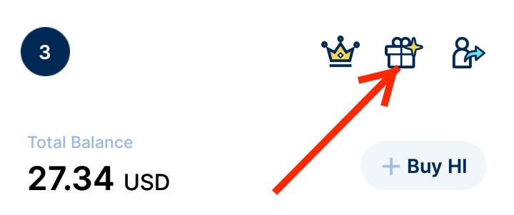 To claim your Hi, you will see one gift box at the top right-hand side of app.