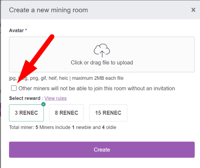 - The Private mining Rooms Only allow members to join through the link of the room creator.