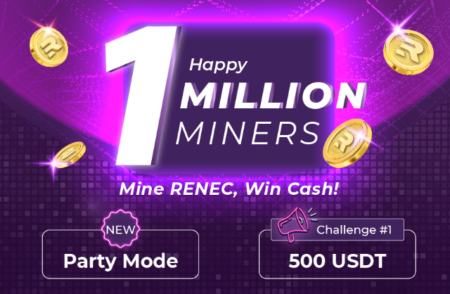 In order to celebrate 1 Million RENEC Miners, We would love to invite you to join a party mode mining Room with a prize pool of up to 500 USDT.