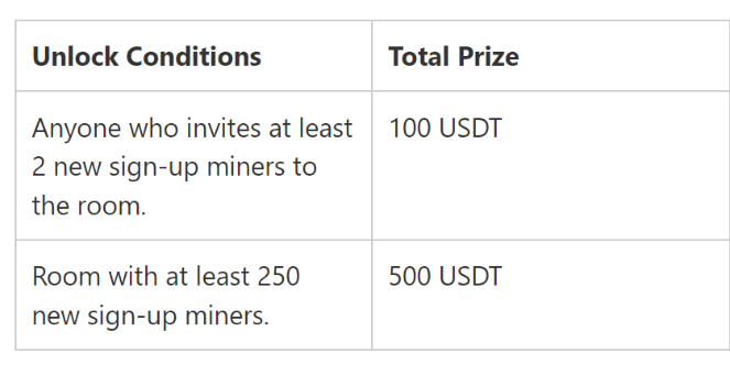 Each miner invites at least two (02) new sign-up miners to be eligible to receive the cash rewards as follows: