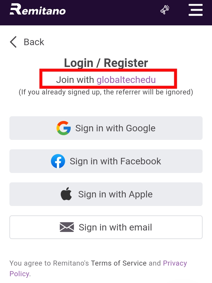 Step 1: Register on Remitano through the link below if you don't have REMITANO account: