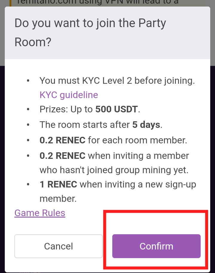 - After clicking on join, a dialogue box will appear and ask you to confirm. Click on "Confirm" as indicated by the Red box in the screenshot below:
