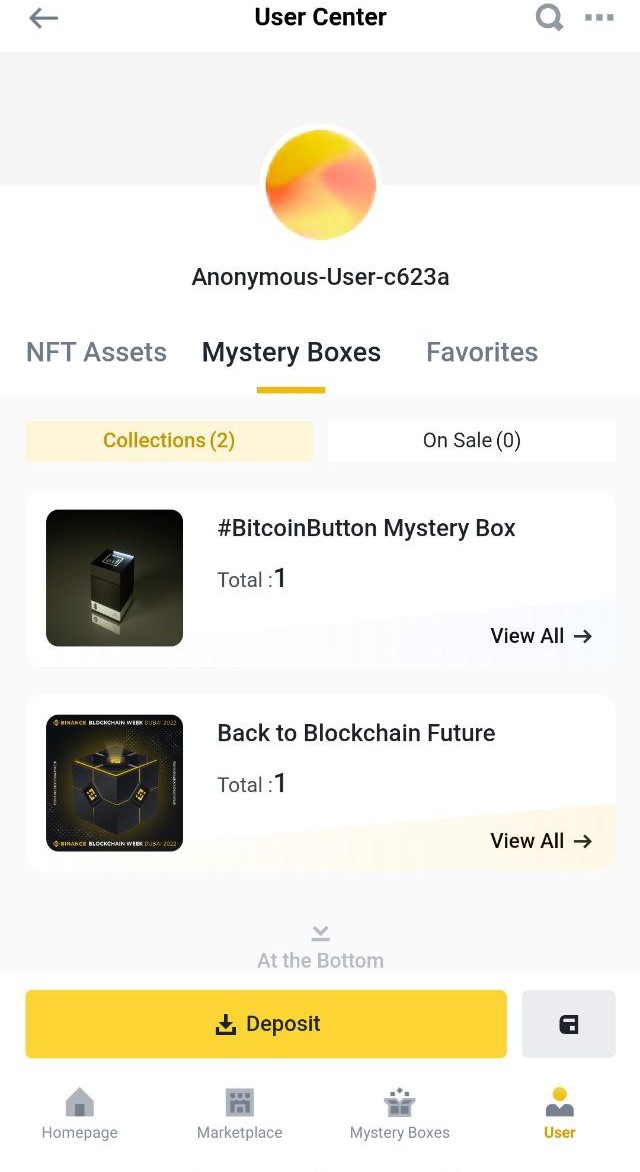 Then go to the User Centre on Binance NFT. You will see the list of UBA NFT you have bought under the Mystery Boxes.