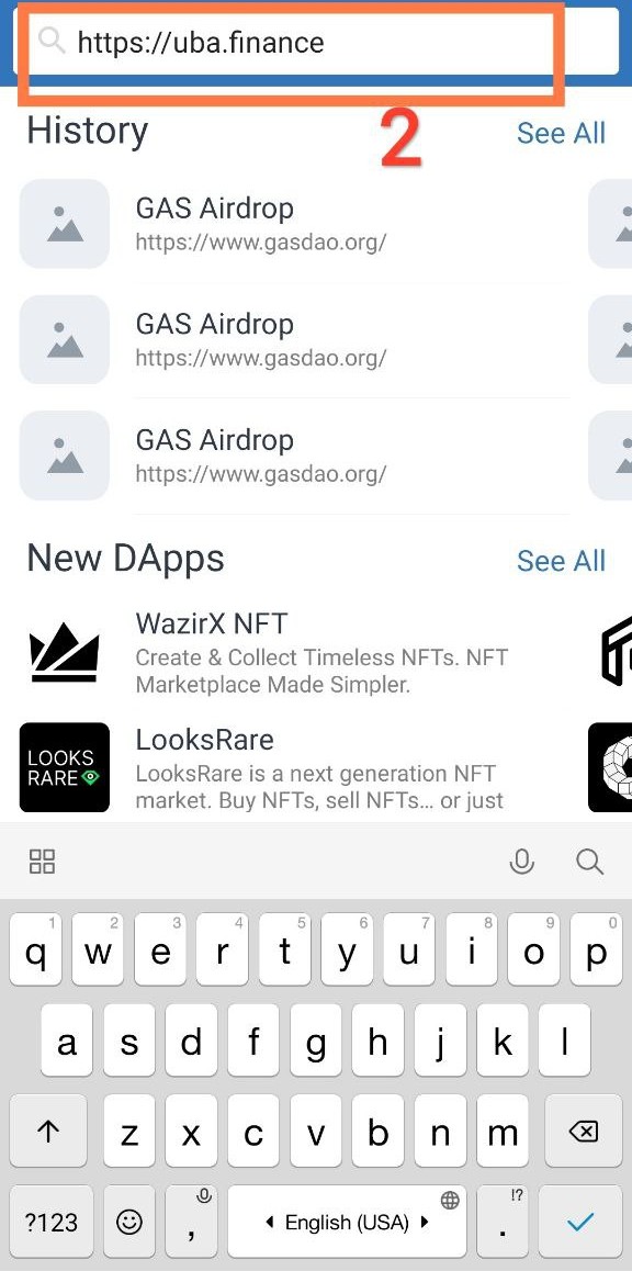 From your Metamask, go to Browser. Then enter the UBA website link. Follow the same process on Trust wallet outlined above.