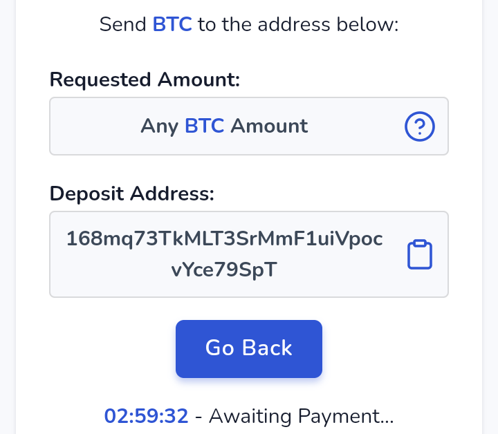 It will generate the address to deposit your money. Copy the address and send your deposit there.