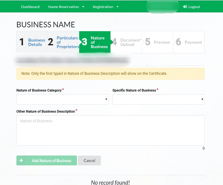 Then follow the steps below to successfully register the approved business name