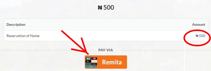 Step Three: You will be required to pay the sum of N500. To do that, click pay by Remita to receipt payment.