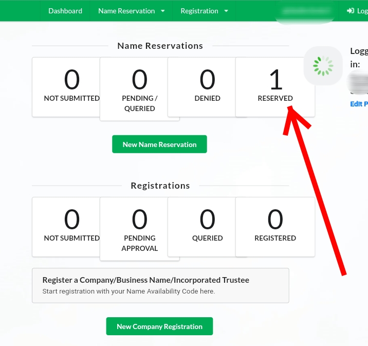 Step One: The next thing is to reserve a name for the business. But you have to first do "Availability search" from the dashboard to ensure the business name is not already used or taken. If the name is not existing before, then you go to reserve the name before it is used by someone else.