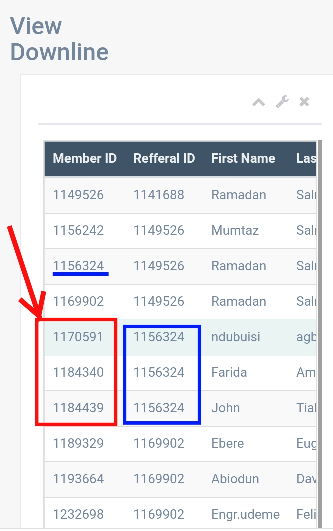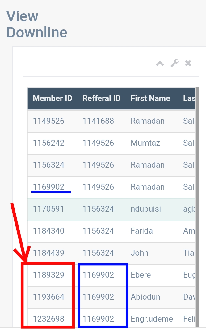 As you can also see from the screenshot below. The user ID with 1169902 underlined and circled in blue colour already referred three persons with the user IDs circled in red color.