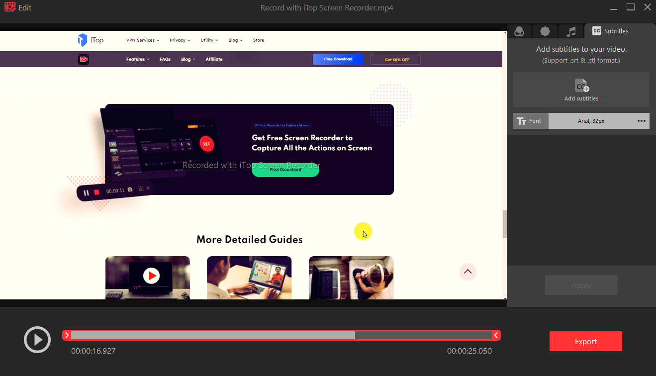 iTop Screen Recorder also has a built-in video editor to trim, cut, and split the captured videos. Even though it is a light screen recorder, it adopts GPU hardware acceleration technology to make video recording and editing more efficient and stable.