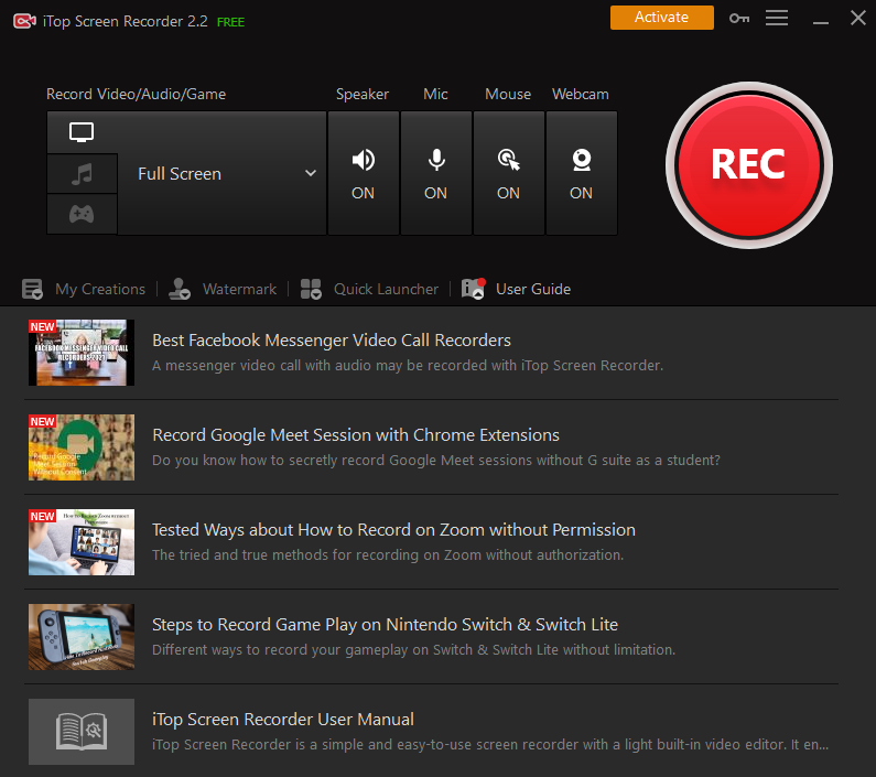 The iTop screen recorder is free with the inbuilt audio feature. One can get access to the premium fully-featured recording software with no limits. On the other hand, it is an easy platform for creating a mesmerizing video and quick editing after records.